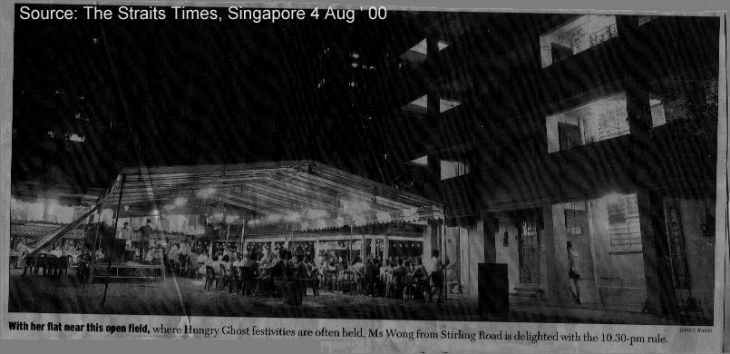 It shows a make-shift tent for the festival and close-by a public housing flat known as Housing Board Flats commonly found in Singapore. Many Singaporeans, I believe, 90 percent of the entire population lives in such `common' flats.